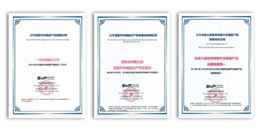 ¡¸Ò»ÄêÈÈÏú³¬5ÒÚ¼þ¡¹¡¢¡¸ÎÞ¿ò´óÃæ°åÀàǽ±Ú¿ª¹Ø²å×ù²úÆ·ÌìÏÂÏúÁ¿ÁìÏÈ¡¹¡¢¡¸ÓµÓÐÈ«Çò×î´óµÄǽ±Ú¿ª¹Ø²å×ùÉú²úÑз¢»ùµØ¡¹ÈÏÖ¤Ö¤Êé